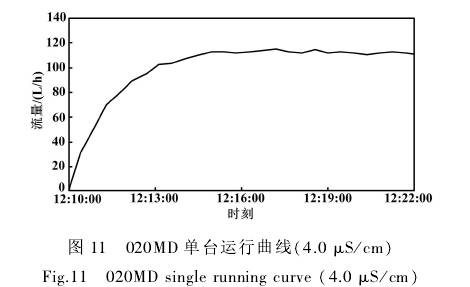 由前述(shu)可知,流體(ti)電導率的(de)高低對采(cai)集的信号(hao)強❌度有直(zhi)接影響。當(dang)電導率低(di)時,電極反(fan)饋的信号(hao)較弱受到(dao)幹擾的影(ying)響越明顯(xian),低電導率(lü)的流量測(ce)量對信号(hao)采集的要(yao)求更高。壽(shou)期末的測(ce)量介質電(dian)導率約爲(wei)4.0μS/cm。對此,将電(dian)導率降至(zhi)4.0μS/cm,運行一段(duan)時🏃‍♂️間後,觀(guan)測🈲到020MD單台(tai)運行穩定(ding),運行曲線(xian)如圖11所示(shi)。