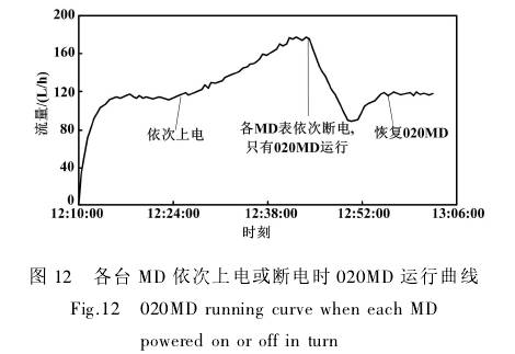 由(you)圖12可知,各(ge)台流量計(ji)依次斷電(dian)至020MD單台運(yun)行時,020MD流量(liang)顯示穩♌定(ding)🛀🏻。