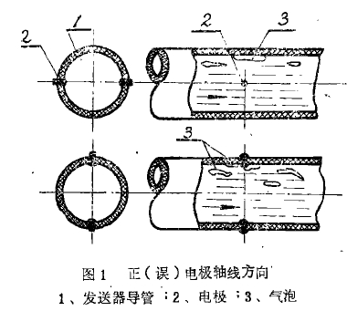 發(fa)送器如(ru)按水平(ping)或傾斜(xie)方向接(jie)裝在管(guan)道上,電(dian)極軸線(xian)應處于(yu)水平方(fang)向,如圖(tu)1所示。這(zhe)樣若液(ye)體中偶(ou)然混入(ru)氣泡不(bu)會遮住(zhu)電極而(er)斷開了(le)流量訊(xun)号回路(lu)。不要使(shi)電極軸(zhou)線處于(yu)垂直方(fang)向,此時(shi)電極處(chu)在導管(guan)的上下(xia)位置,一(yi)方面混(hun)入氣泡(pao)易遮住(zhu)上方電(dian)極,造成(cheng)流量訊(xun)号突然(ran)中斷,指(zhi)示表指(zhi)針跳動(dong),另一方(fang)面下方(fang)電極在(zai)無流量(liang)時易被(bei)沉積物(wu)遮住。