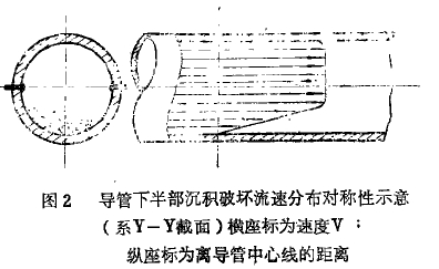 首先(xian),發送器(qi)必須接(jie)裝在垂(chui)直管道(dao)上這樣(yang)可以克(ke)服水平(ping)安裝時(shi)的缺點(dian):其一,礦(kuang)漿在水(shui)平管道(dao)中流動(dong)時,粗細(xi)不同的(de)顆粒不(bu)可能分(fen)布均勻(yun),發送器(qi)導管下(xia)半部的(de)襯裏磨(mo)耗更爲(wei)嚴重,造(zao)成磨損(sun)不均勻(yun);其二,礦(kuang)漿在緩(huan)慢流動(dong)時,還會(hui)産生顆(ke)粒沉積(ji)的現象(xiang),導管下(xia)半部分(fen)流速慢(man)甚至不(bu)流.動,破(po)壞了流(liu)速分布(bu)的對稱(cheng)性,變成(cheng)如圖2所(suo)示不對(dui)稱的流(liu)速分布(bu),這樣也(ye)要造成(cheng)測量流(liu)量的誤(wu)差。因此(ci)發送器(qi)必須選(xuan)擇安裝(zhuang)在垂直(zhi)管道的(de)位置上(shang)。.