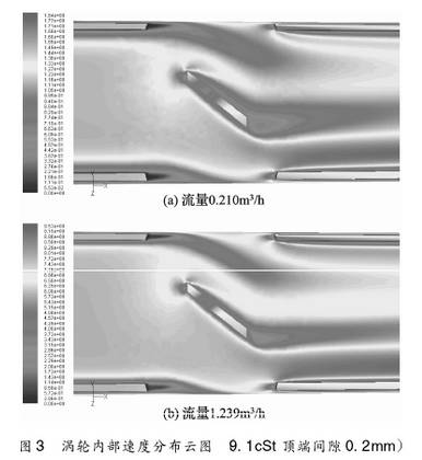 比較(jiao)圖3(a)和(he)圖3(b)、圖(tu)4(a)和圖(tu)4(b),可以(yi)看出(chu)當流(liu)體粘(zhan)度一(yi)定時(shi),流量(liang)越大(da),葉🏃‍♀️輪(lun)的尾(wei)部低(di)流速(su)區越(yue)小。當(dang)頂端(duan)間隙(xi)❤️由0.2mm增(zeng)加:至(zhi)0.5mm時,對(dui)于相(xiang)同粘(zhan)度的(de)流體(ti)和相(xiang)同的(de)流量(liang)⚽點,葉(ye)輪尾(wei)部低(di)流速(su)區變(bian)小,表(biao)明葉(ye)輪📱旋(xuan)轉角(jiao)速度(du)增大(da),即儀(yi)🍓表系(xi)數變(bian)大。但(dan)在小(xiao)流量(liang)點處(chu),低流(liu)速區(qu)🔅的相(xiang)對變(bian)化較(jiao)之于(yu)大流(liu)量點(dian)處要(yao)大,即(ji)小流(liu)量點(dian)⭐處葉(ye)輪轉(zhuan)速的(de)相對(dui)變化(hua)比大(da)流量(liang)點處(chu)要大(da),則儀(yi)表系(xi)數的(de)☁️增加(jia)值相(xiang)對也(ye)大,故(gu)渦輪(lun)的線(xian)性度(du)誤差(cha)減⭕小(xiao)。