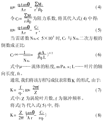 由(you)式(5)和式(6)可(ke)見:當流體(ti)的粘度增(zeng)大時,渦輪(lun)的轉動角(jiao)速度變小(xiao)☂️;當流體密(mi)度變大時(shi),渦輪的轉(zhuan)動角速度(du)也随之增(zeng)大。在流體(ti)速度較小(xiao)(相當于層(ceng)流狀态)時(shi),渦輪的頻(pin)率響應非(fei)線性,且受(shou)流體性質(zhi)變化影🚶♀️響(xiang)較大;當☔流(liu)體速度較(jiao)高(相當于(yu)湍流狀态(tai))時,式變小(xiao),渦輪響應(ying)近似線性(xing),儀器常數(shu)K基本上不(bu)受流體粘(zhan)度變化影(ying)響。