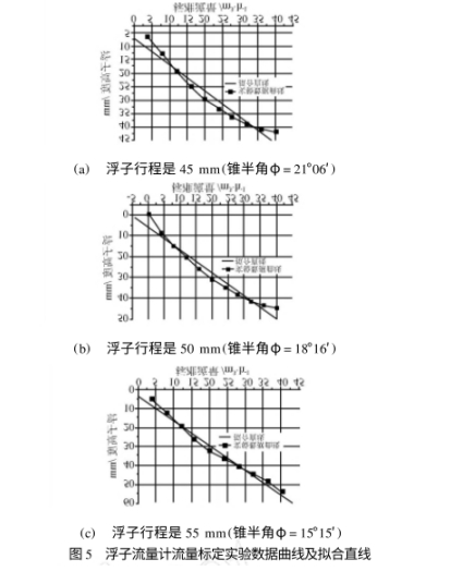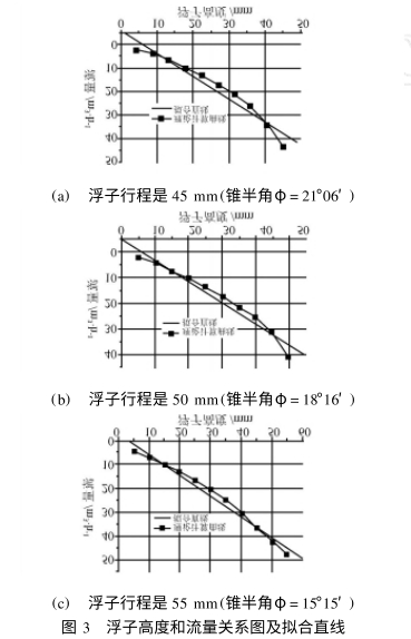 如圖(tu)3所示(shi),(a)、(b),(c)分别(bie)是行(hang)程爲(wei)45mm,50mm和55mm的(de)浮子(zi)流量(liang)計浮(fu)子高(gao)度和(he)流量(liang)間對(dui)應關(guan)系曲(qu)線及(ji)利用(yong)最小(xiao)二乘(cheng)法拟(ni)合的(de)☎️直線(xian).從表(biao)1.表2,表(biao)3中第(di)三列(lie)所示(shi)的非(fei)線性(xing)誤差(cha)數據(ju)可以(yi)看出(chu),當利(li)用公(gong)式(1)進(jin)行流(liu)量計(ji)算時(shi)在不(bu)同的(de)流量(liang)點處(chu)流量(liang)和浮(fu)子高(gao)😄度之(zhi)間表(biao)現出(chu)了不(bu)💰同的(de)非線(xian)性誤(wu)差,流(liu)量和(he)🐇浮子(zi)高度(du)之間(jian)不是(shi)線性(xing)對應(ying)關系(xi).