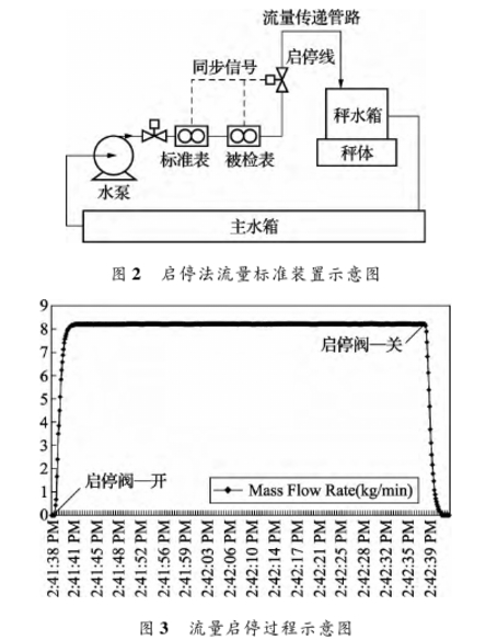 閥(fa)門啓停法(fa)的流量标(biao)準裝置的(de)簡單示意(yi)圖如圖2所(suo)示,循🐅環水(shui)經過泵進(jin)入标準表(biao)和被檢表(biao),再經過啓(qi)停🥵閥門進(jin)入秤水箱(xiang)。一個标定(ding)過程可以(yi)通過控制(zhi)啓停閥來(lai)控制,啓停(ting)閥,标準表(biao)和被檢.表(biao)通過同步(bu)信号同步(bu)計時。啓💛停(ting)閥必須選(xuan)用開關動(dong)作快的閥(fa)門,文本實(shi)驗使用的(de)标定裝置(zhi)啓停閥的(de)動作時間(jian)小于0.7s。同時(shi),啓停閥後(hou)端到秤的(de)水箱的管(guan)路🛀需要進(jin)行優化設(she)計,以保證(zheng)每次啓停(ting)時的重複(fu)性達到要(yao)求。
