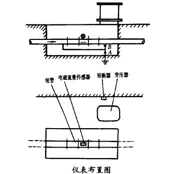 勘察(cha)現場,儀表(biao)布置及周(zhou)圍環境如(ru)下圖所示(shi)。電磁流量(liang)計安裝🐉、電(dian)氣連接和(he)接地基本(ben)符合《使用(yong)說明👄書》規(gui)定的要求(qiu)。與流量傳(chuan)🈲感器連接(jie)的管道是(shi)有水泥襯(chen)裏的鋼管(guan),流量傳感(gan)器上下遊(you)緊接一段(duan)長0.5m的無襯(chen)裏的短鋼(gang)管。電磁流(liu)量轉換器(qi)與傳感器(qi)相距約10m。