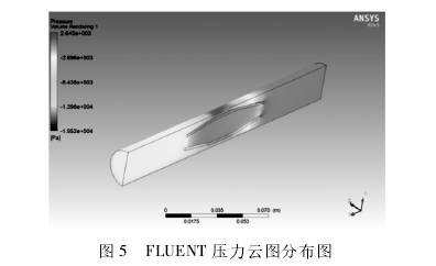 分(fen)别導出一(yi)組試驗的(de)仿真壓力(li)雲圖進行(hang)對比,如圖(tu)5、圖6所示。由(you)圖可知,壓(ya)力分布基(ji)本相同,COMSOL的(de)壓力雲圖(tu)更⛹🏻♀️加立體(ti)直觀,視覺(jiao)效果比FLUENT更(geng)好。