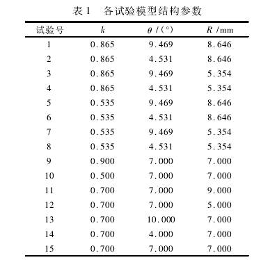回歸(gui)正交試驗(yan)是在因素(su)的合理變(bian)化範圍内(nei)選取有限(xian)🍉個試驗點(dian)安排模拟(ni)計算統計(ji),根據有限(xian)個試驗點(dian)建立🤩具有(you)一定可信(xin)度的回歸(gui)方程,當各(ge)個結構參(can)數☎️确定之(zhi)後,可利用(yong)回歸方程(cheng)進行估算(suan)見,。選擇優(you)化的主要(yao)參數是異(yi)徑比🐇k、擴散(san)角θ和節流(liu)件的🔴大管(guan)半徑R.采用(yong)二次正交(jiao)回歸組合(he)設計的試(shi)驗方法,首(shou)先設定3個(ge)控制參數(shu)的變化範(fan)圍:異徑比(bi)k爲0.5~0.9;擴散角(jiao)θ爲4°~10°;節🏃♀️流件(jian)的大管半(ban)徑R爲5~9mm。依據(ju)二次回歸(gui)正交試驗(yan)的設計原(yuan)則,可💔以得(de)到各組試(shi)驗👌的結構(gou)參數🈲見表(biao)1。